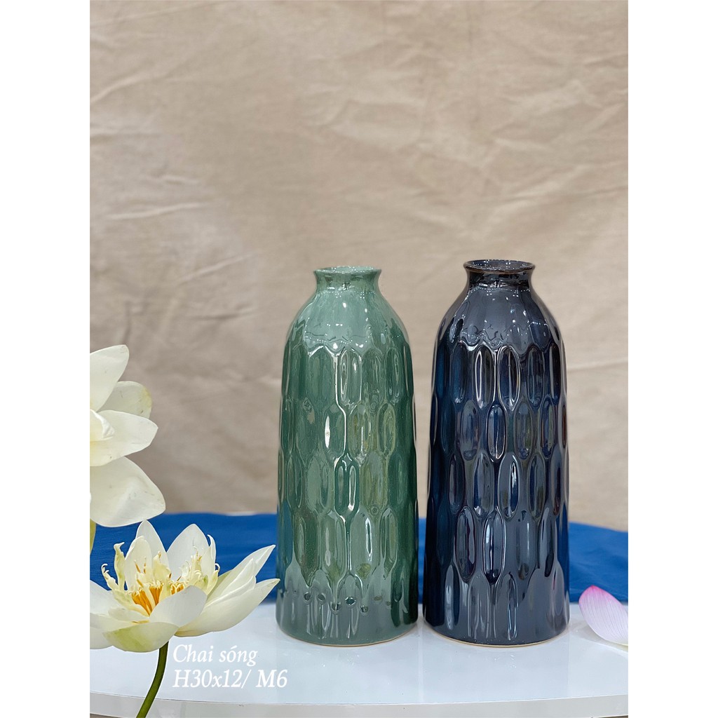Bình Lọ cắm hoa bình hoa trang trí decor men hoả biến gốm sứ Bát Tràng - Dáng chai