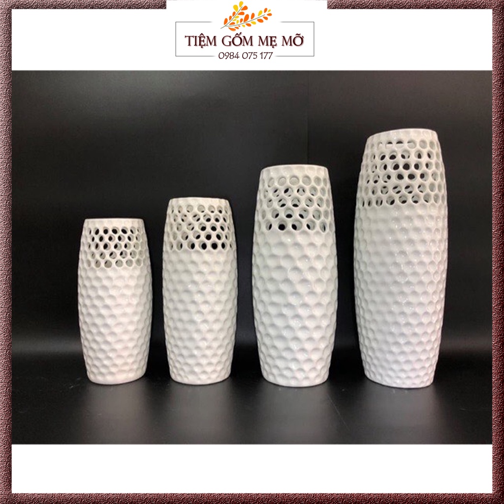 Bình Lọ cắm hoa men trắng Bát Tràng - Bom lỗ tổ ong