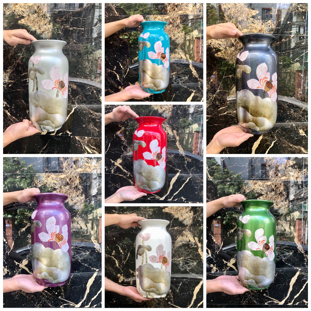 Nhà cửa & Đời sống > Trang trí nhà cửa > Bình trang trí || Bình Lọ cắm hoa trang trí decor sứ sơn mài hoạ tiết hoa sen khảm trứng bạc - dáng lọ bíCòn hàng