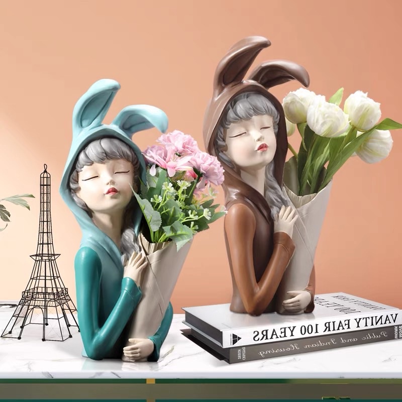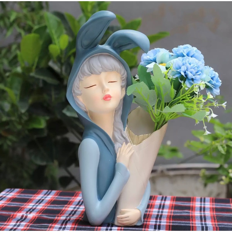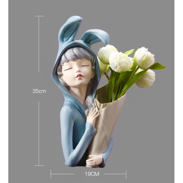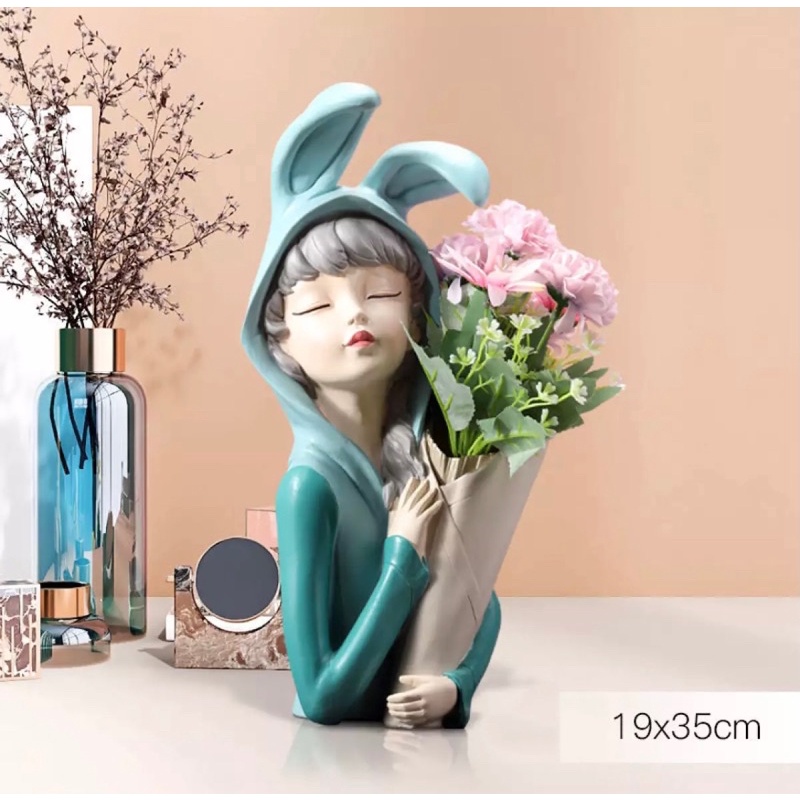 Nhà cửa & Đời sống > Trang trí nhà cửa > Bình trang trí || Bình lọ cô gái ôm hoa tai thỏ tượng decorCòn hàng
