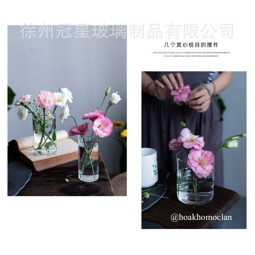 Bình lọ thuỷ tinh cắm hoa trong suốt hình trụ cao cấp đồ trang trí decor nhà cửa