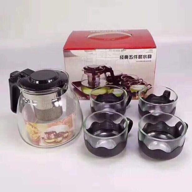 Bộ bình lọc trà 4 cốc thuỷ tinh gia si