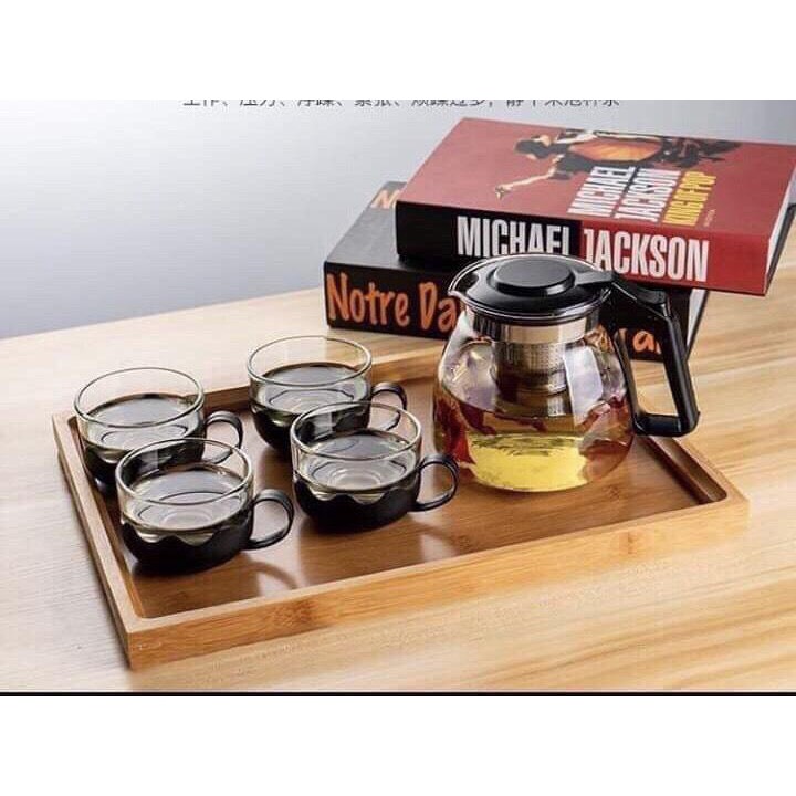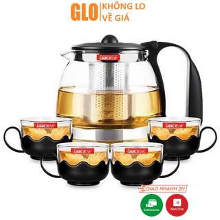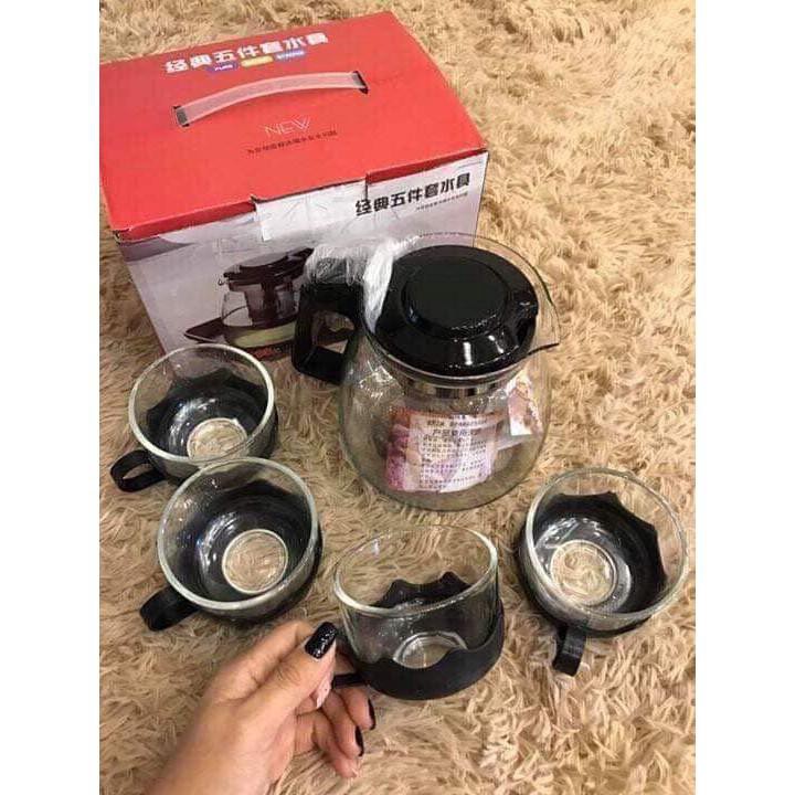 Bộ Bình Lọc Trà 700ml Thủy Tinh Kèm 4 Ly Tiện Dụng