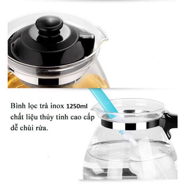 - Chất liệu :Bình trà thủy tinh chịu nhiệt độ cao . Lưới lọc trà bằng inox 304 cao cấp chống gỉ sét .