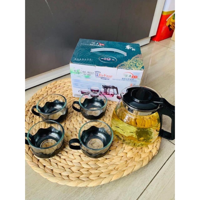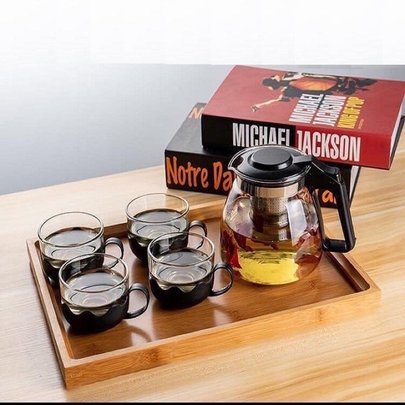Bộ bình lọc trà thủy tinh kèm 4 ly