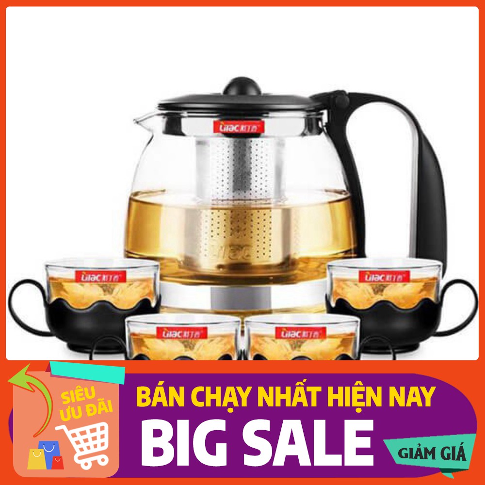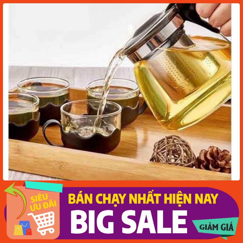 Bộ Bình Lọc Trà Thủy Tinh Kèm 4 Ly - Lưới Lọc Inox 304 Tiện Dụng
