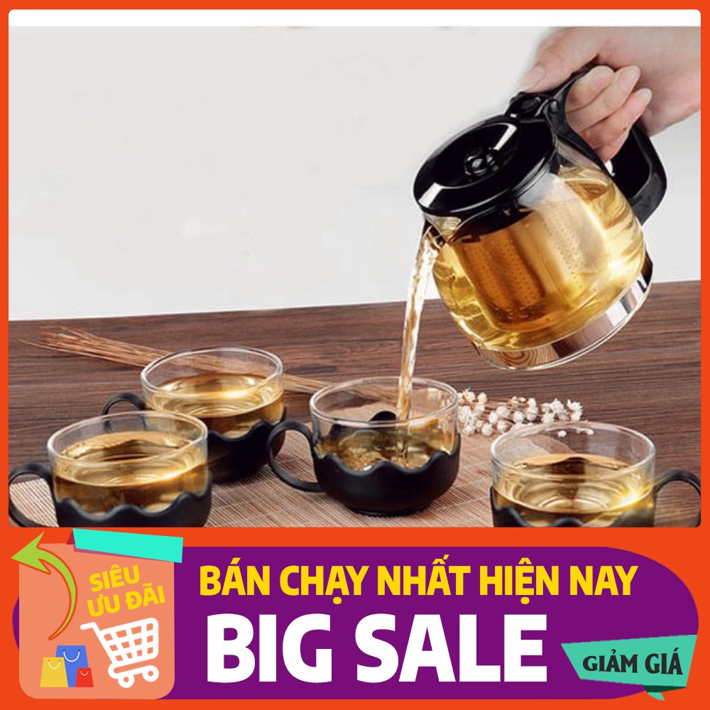 Nhà cửa & Đời sống > Dụng cụ nhà bếp > Dụng cụ pha trà, cà phê || Bộ Bình Lọc Trà Thủy Tinh Kèm 4 Ly - Lưới Lọc Inox 304 Tiện DụngCòn hàng