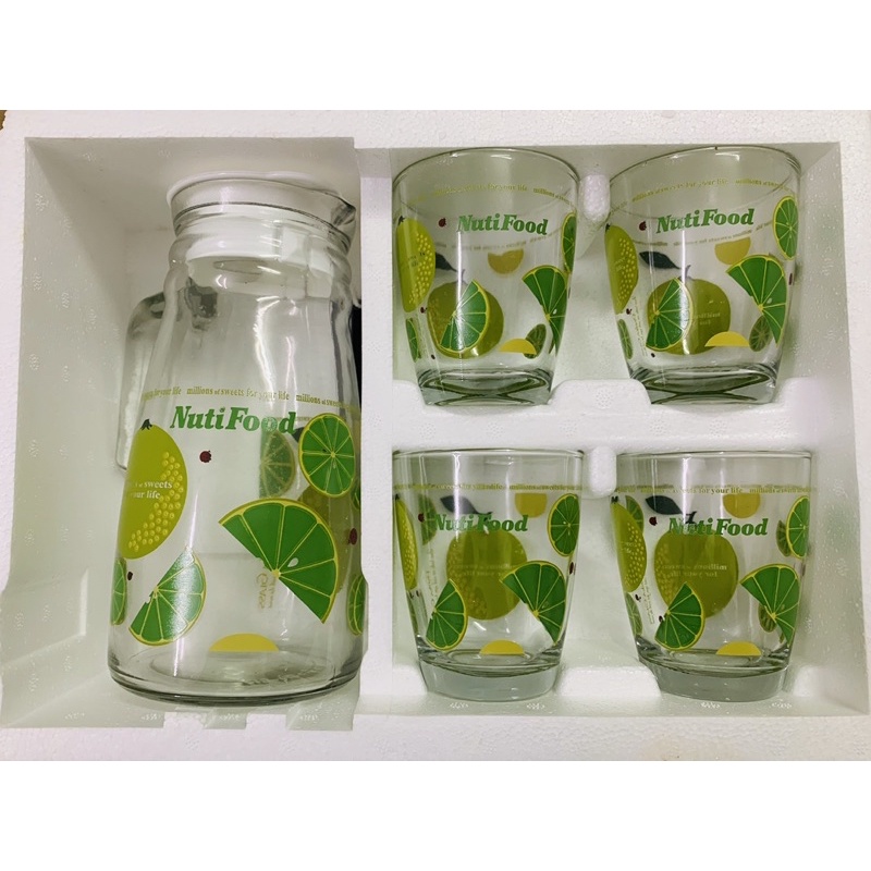 1 bộ gồm bình + 4 cốc thuỷ tinh rất đẹp