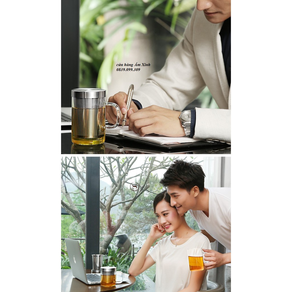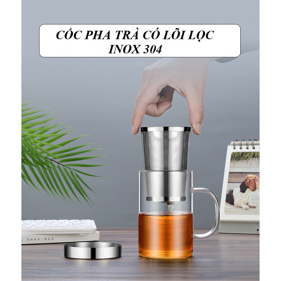 Bình, Ly cốc thủy tinh pha trà có lõi lọc và nắp đậy