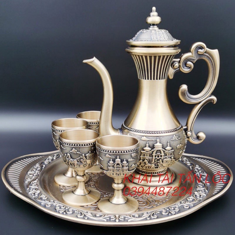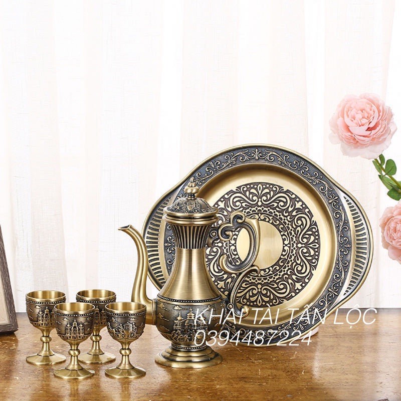 Bộ bình ly rượu cổ trang bằng đồng