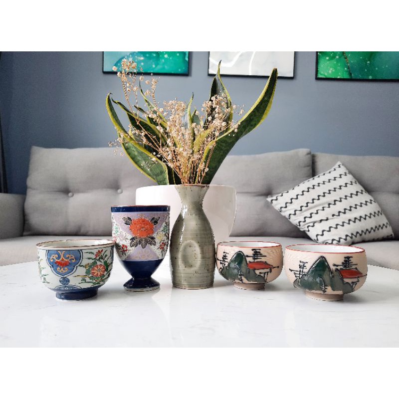 Bình, ly, tách gốm sứ ngũ sắc vật phẩm để bàn trang trí