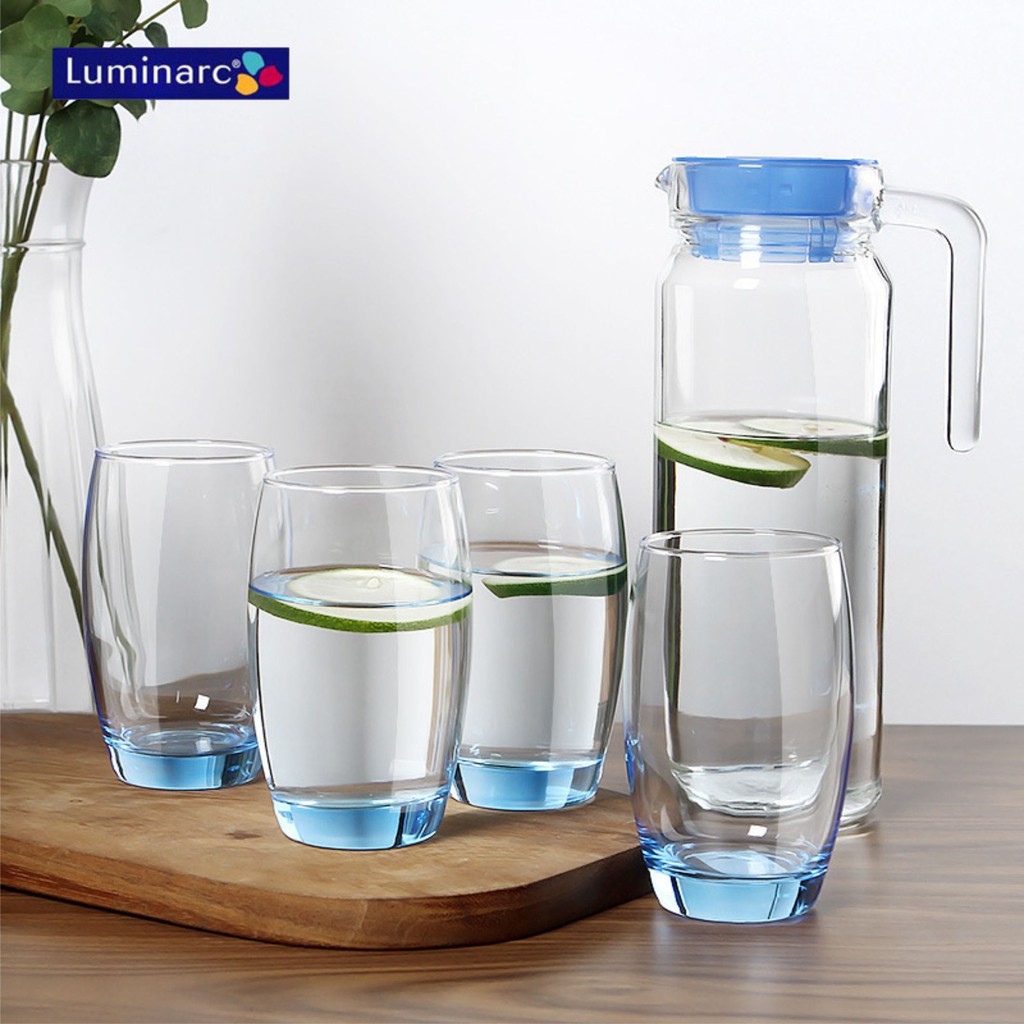 Bộ Bình Ly Thủy Tinh Luminarc Rotterdam Ice Blue 5 Món J1799 ( 01 Bình 1.1Lít + 04 Ly 350ml )