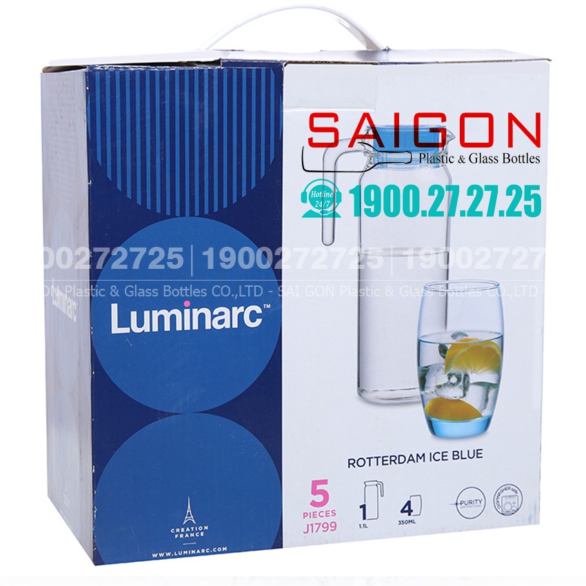 Giới thiệu Bộ Bình Ly Thủy Tinh Luminarc Rotterdam Ice Blue 5 Món J1799 ( 01 Bình 1.1Lít + 04 Ly 350ml )