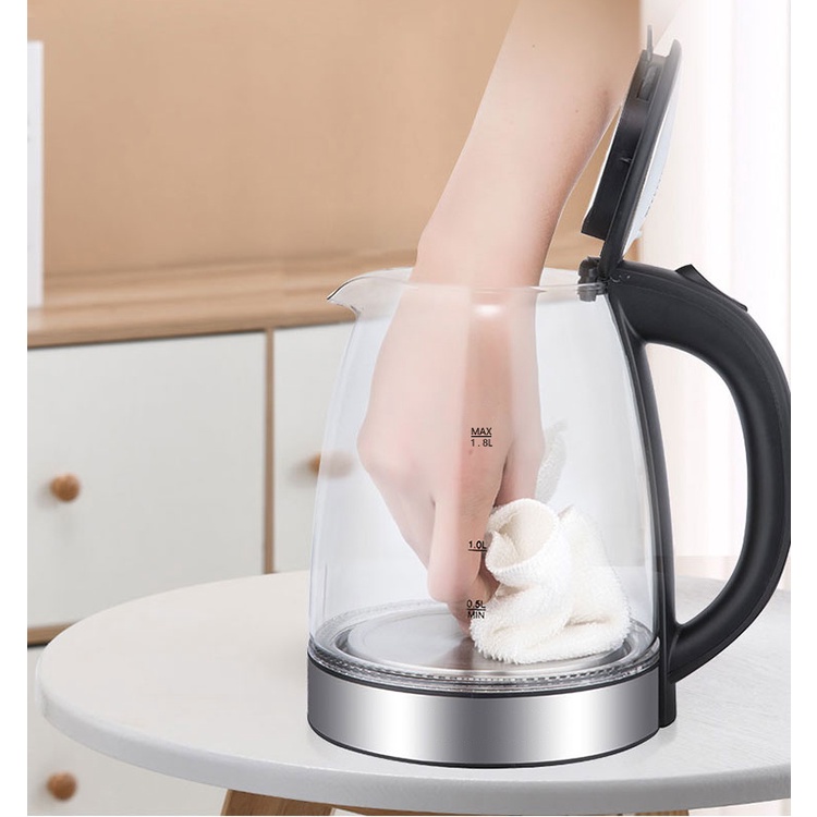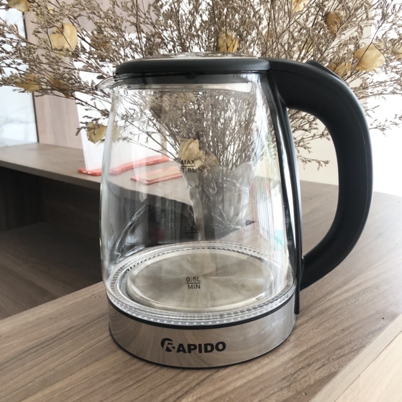 Bình nấu nước siêu tốc thủy tinh RAPIDO RK1818 dung tích 1,8 lít, tiết kiệm điện, nước nóng nhanh SELL SMART