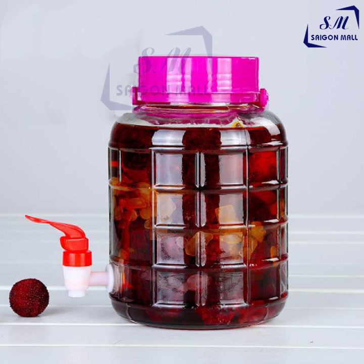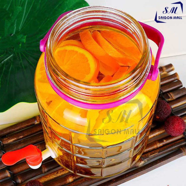 Bình ngâm rượu 3 lít thủy tinh có quai xách - Có Van và không van