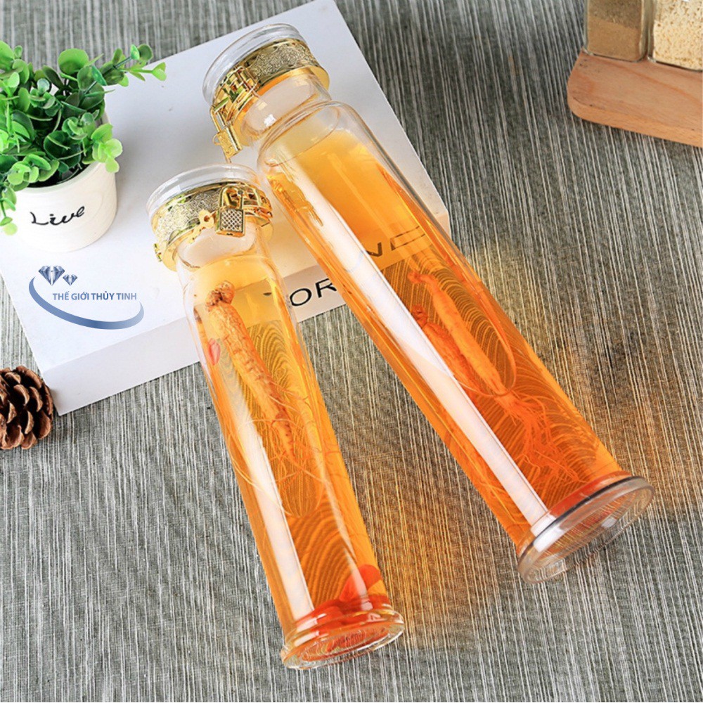 Bình Ngâm Rượu Nhân Sâm 2.5 Lít Cao Cấp Có KhóaĐường kính thân 10 cm chiều cao luôn nắp 46 cm đường kính miệng 5cm