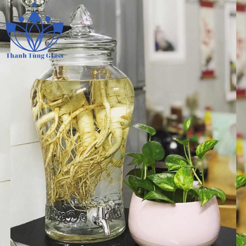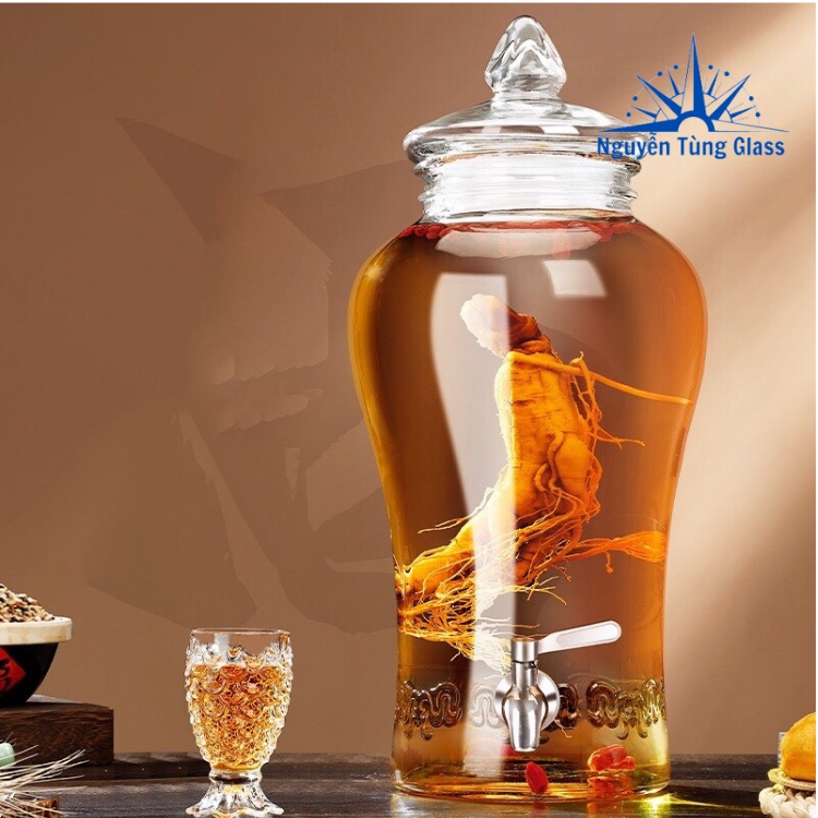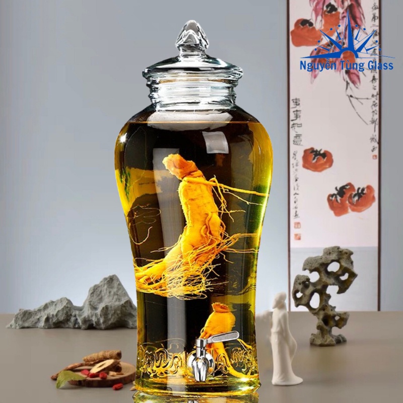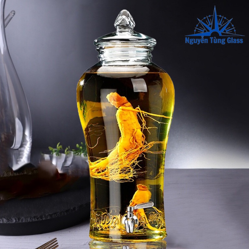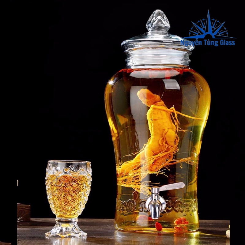 Bình Ngâm Rượu Sâm hoa văn chân mây Thủy Tinh 6 lít . có van & không van