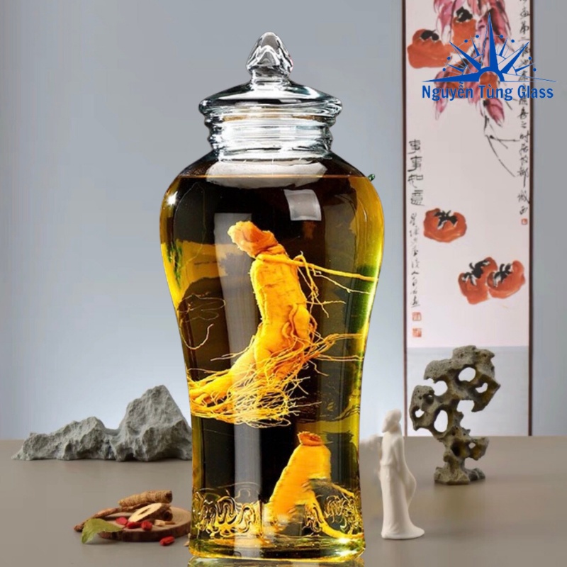 Giới thiệu Bình Ngâm Rượu Sâm hoa văn chân mây Thủy Tinh 6 lít . có van & không van