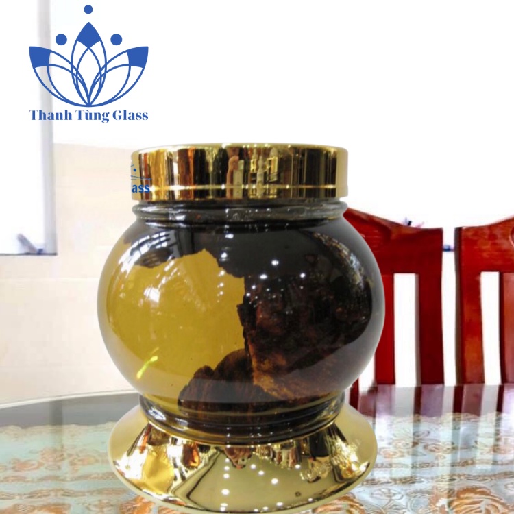 - Độ dày bình thủy tinh hơn 3 li, thân đều, tạo hình sang trọng, sạch sẽ, nổi bật được củ sâm bên trong.