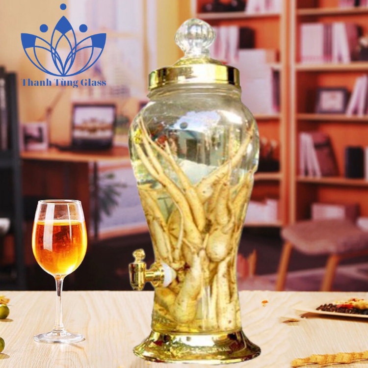 Giới thiệu Bình ngâm rượu sâm thủy tinh 4 lít có van và không van