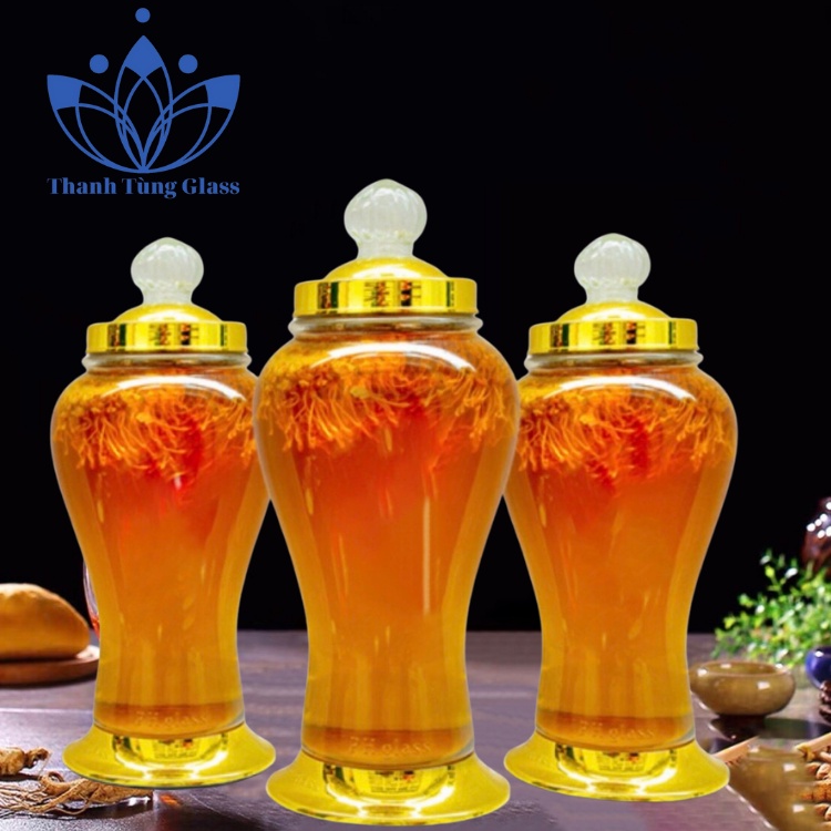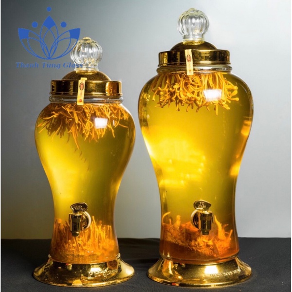 - Bình thủy tinh ngâm sâm kiểu dáng đẹp vừa để ngâm rượu quý, vừa để trang trí nội thất gia chủ.