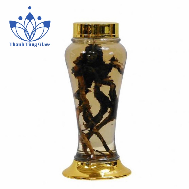 - Bình thủy tinh ngâm sâm kiểu dáng đẹp vừa để ngâm rượu quý, vừa để trang trí nội thất gia chủ.