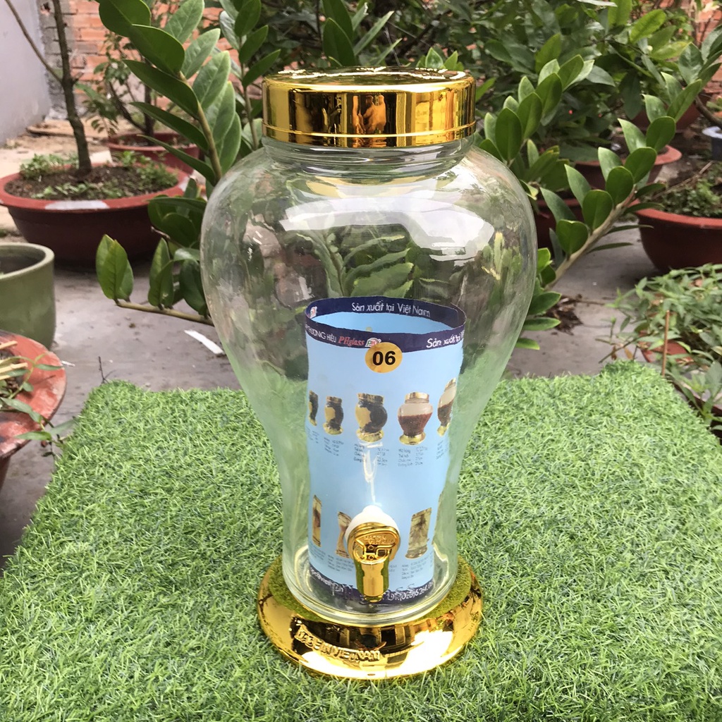Bình ngâm rượu sâm thủy tinh 6 lít có van và không van
