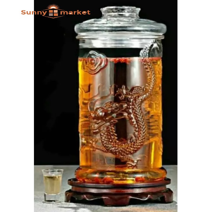 - Bình ngâm rượu thủy tinh hình trụ hoa văn rồng được làm từ thủy tinh nguyên chất, có độ dày, trong suốt và sáng bóng cao, thích hợp để ngâm sâm, ủ lên men các loại hoa quả, thuốc bắc, đinh lăng. Thích gì đựng nấy hoặc dùng để trang trí nội thất cho tư gia quán ăn, nhà hàng...