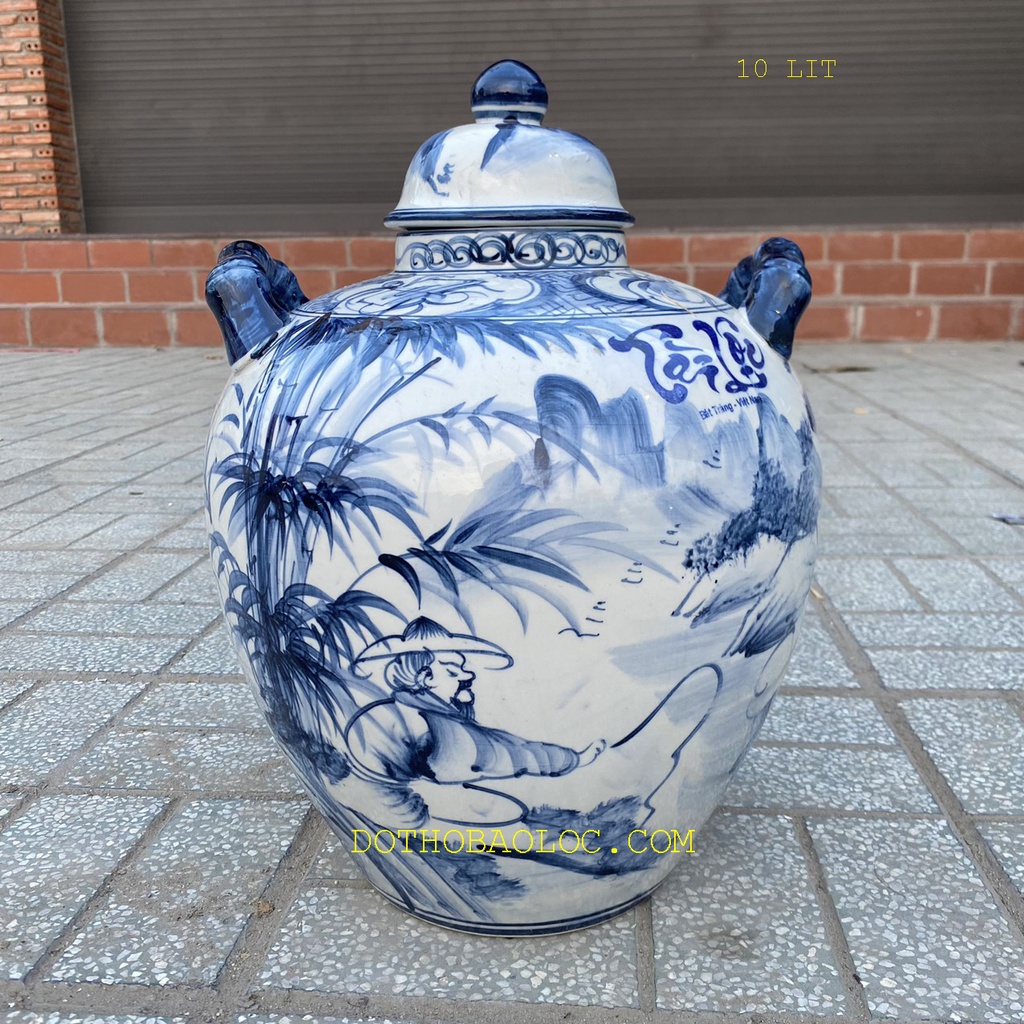 Bình ngâm ruou sứ Bát Tràng Tài Lộc - Không vòi 10 lít
