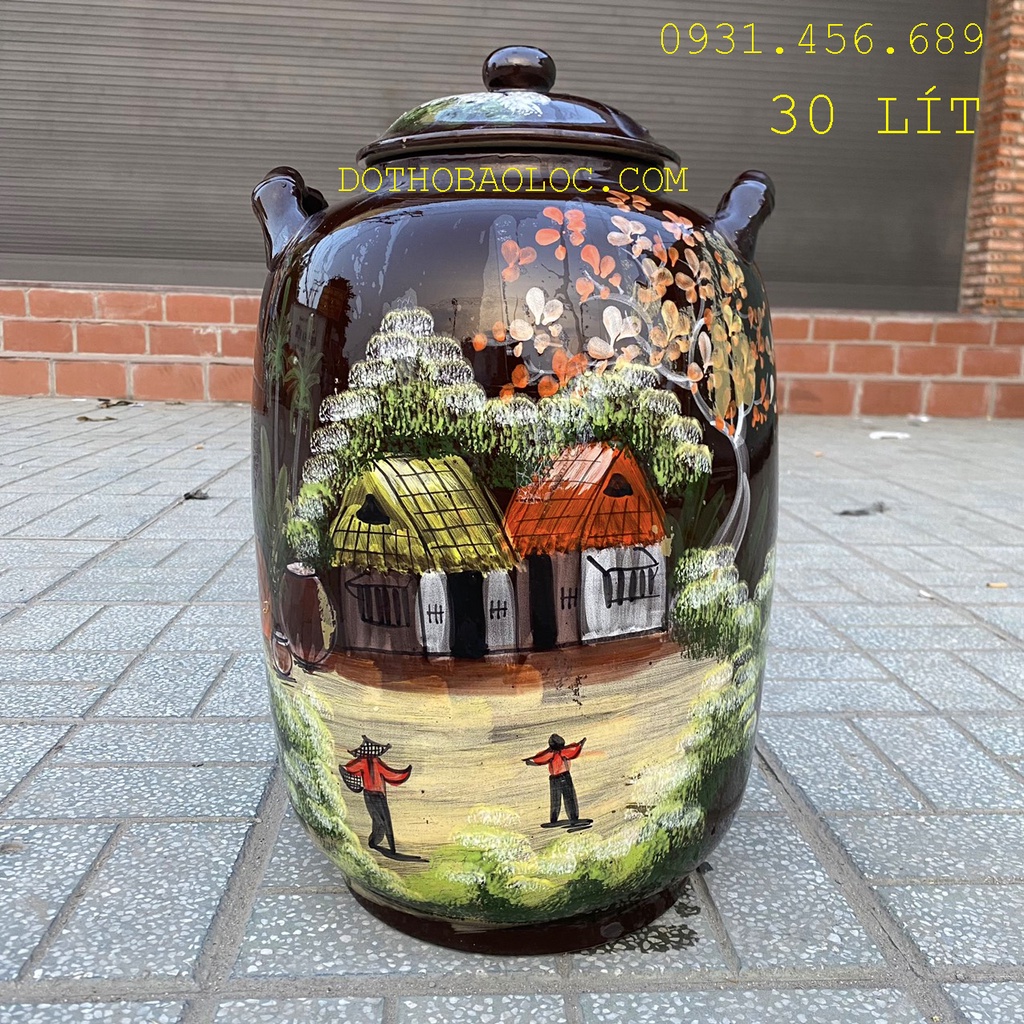 Bình ngâm ruou sứ Bát Tràng vẽ cảnh đồng quê - Không vòi 30 lít