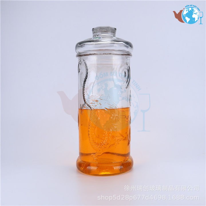 Bình thủy tinh trụ có hoa văn hình con rồng hoàn toàn phù hợp với mục đích sử dụng của gia đình bạn.