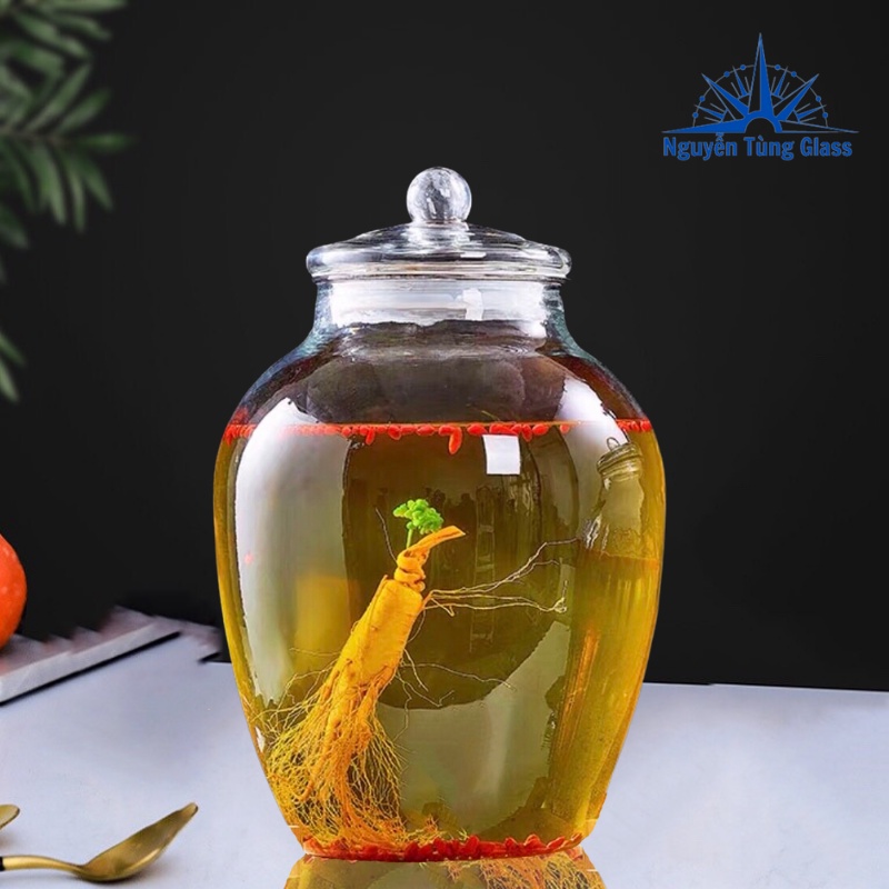 SẢN PHẨM KHÔNG BAO GỒM ĐẾ GỖBình thủy tinh ngâm rượu chum trơn,15 lít có van & không van