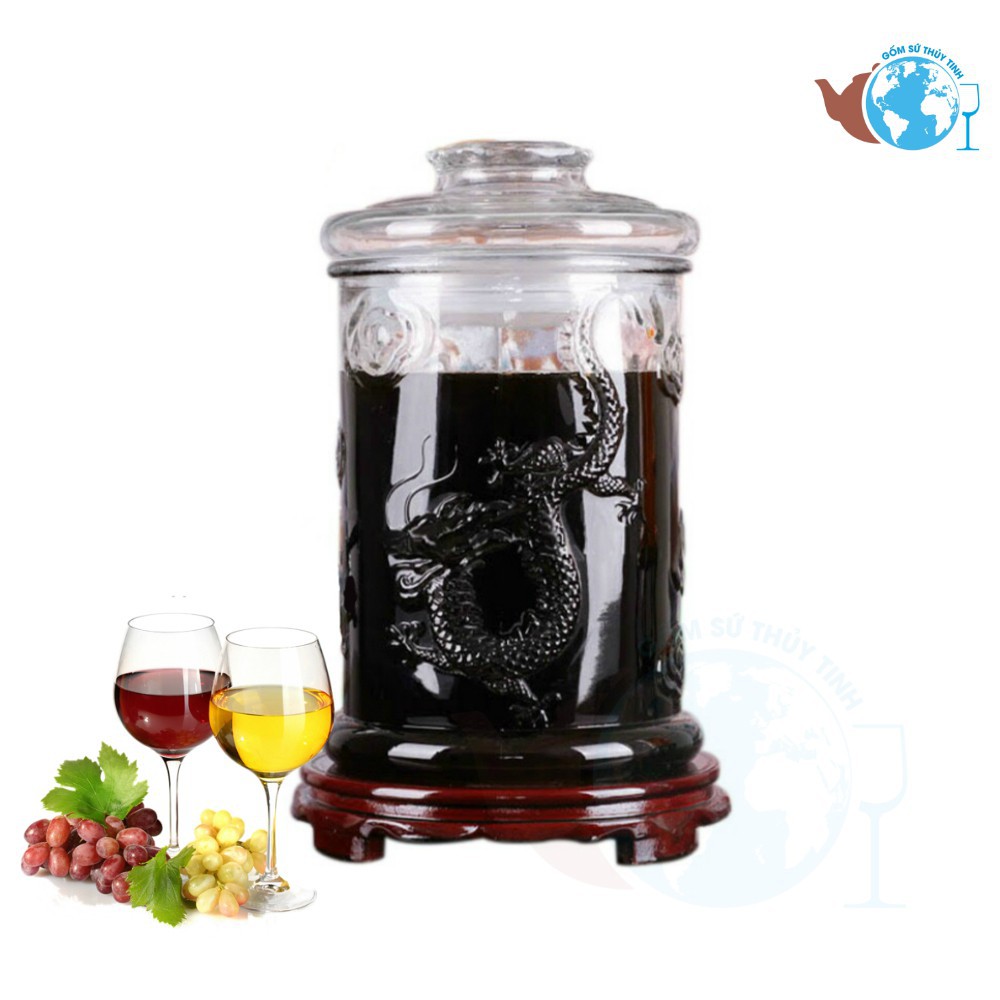 Bình ngâm rượu thủy tinh 19 lít dáng trụ hoa văn rồng - không van