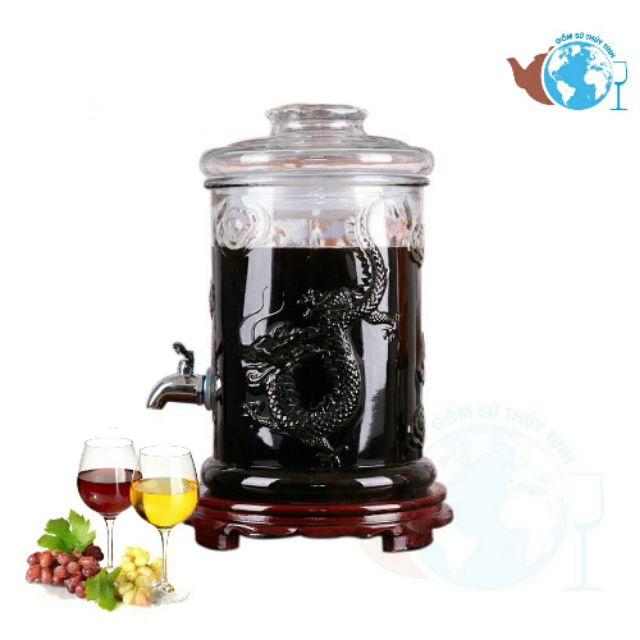 Nhà cửa & Đời sống > Bộ đồ bàn ăn > Bình nước & phụ kiện || BìNh Ngâm Rượu Thủy Tinh 25 Lít, 15 Lít Có Van Và Không Van Dáng Trụ Rồng Hoa VănCòn hàng