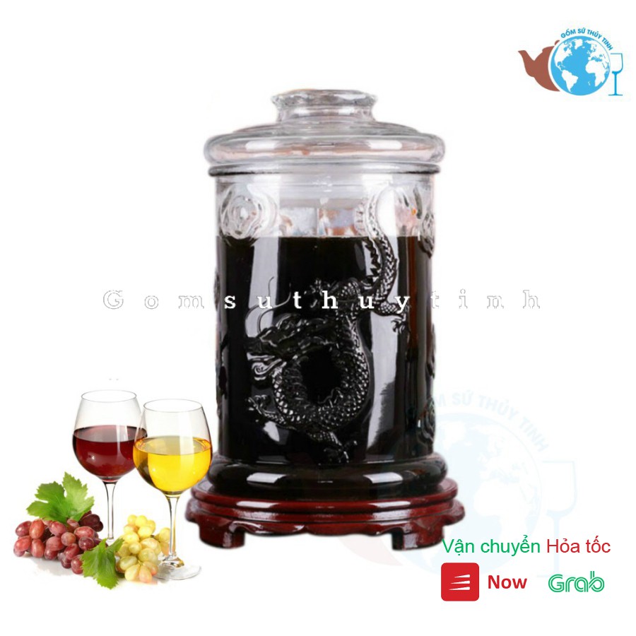 Bình Ngâm Rượu Thủy Tinh 6 Lít Dáng Trụ Hoa Văn Rồng - Không Van