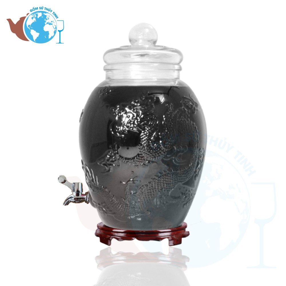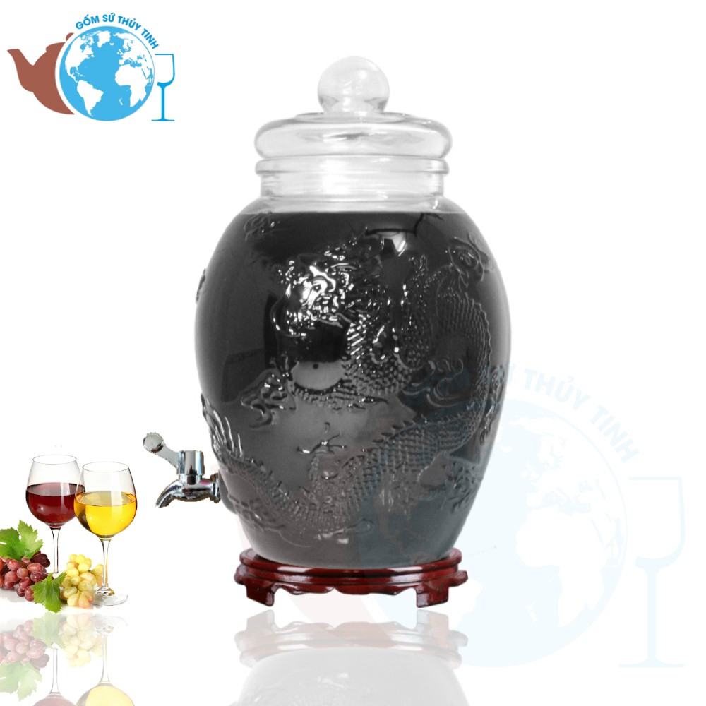 Bình Ngâm Rượu Thủy Tinh Rồng Phụng 6 Lít Có Van và Không Van.Sản phẩm không bao gồm đế gỗ.