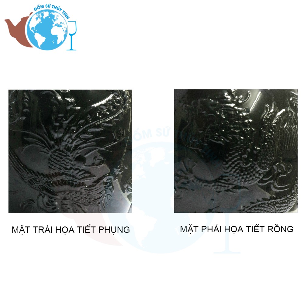 ***Thiết kế nổi bậc với 1 bên là hình con Rồng, và 1 bên là hình Con Phụng bao quanh bình sâm. Làm cho bình ngâm sâm của bạn rất sang trọng và cao quý, thể hiện sự giàu sang, phú quý và thịnh vượng cho gia đình đình bạn.