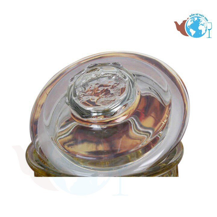 Bình ngâm rượu thủy tinh 8 lít dáng trụ hoa văn rồng - không van