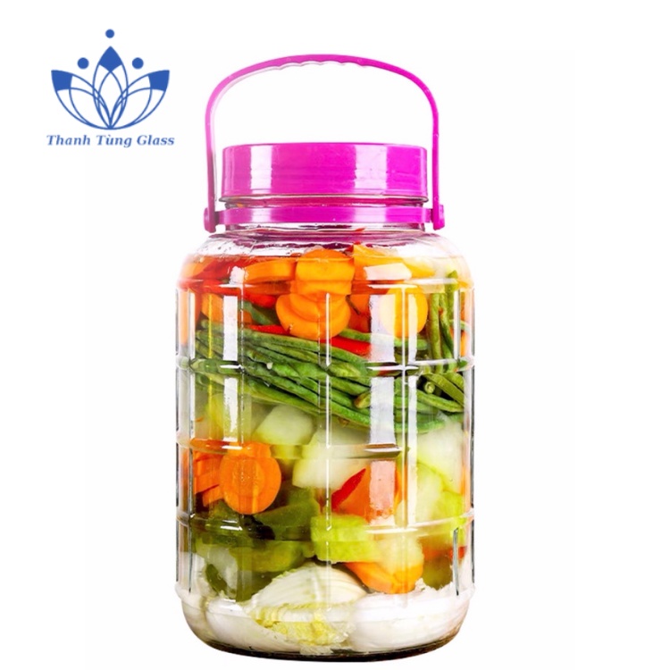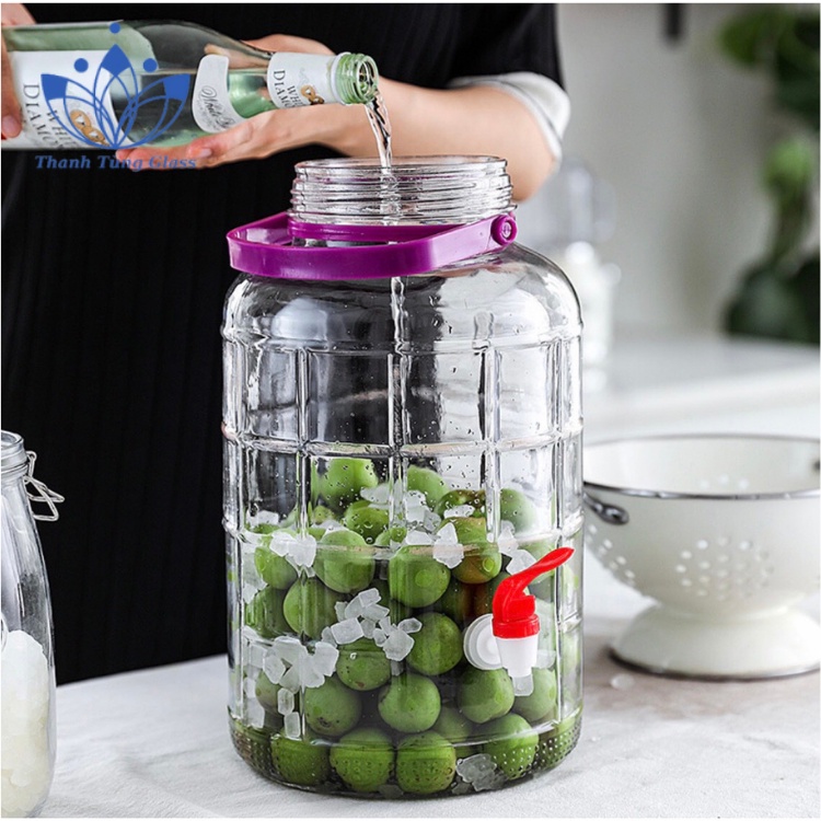 Bình Ngâm Rượu (hũ thủy tinh ngâm rượu) Thủy Tinh Quai Xách Nắp Tím(Lọ ngâm rượu thủy tinh quai xách không van & có van 8 lít)