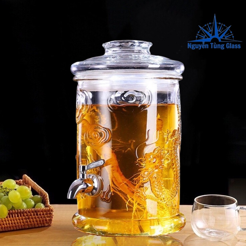 Nhà cửa & Đời sống > Bộ đồ bàn ăn > Bình nước & phụ kiện || Bình ngâm rượu thủy tinh 8 lít dáng trụ hoa văn rồngCòn hàng