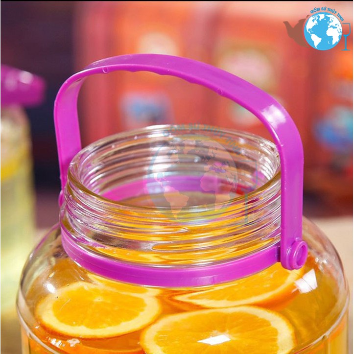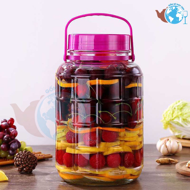 Bình Ngâm Rượu (hũ thủy tinh ngâm rượu) Thủy Tinh Quai Xách Nắp Tím(Lọ ngâm rượu thủy tinh quai xách không van 8 lít)