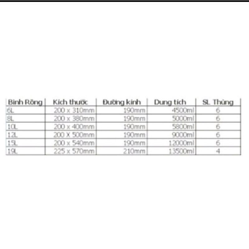Bình 8L: thể tích thực 6 lít