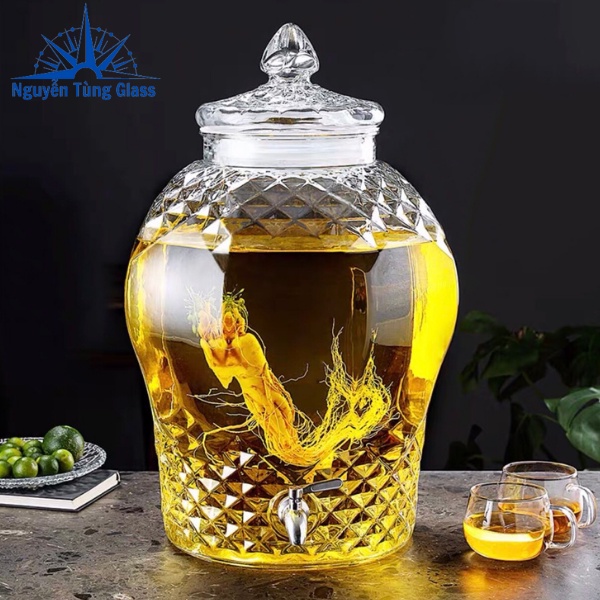 Bình thủy tinh 8l có hoa văn hình kim cương hoàn toàn phù hợp với mục đích sử dụng của gia đình bạn.