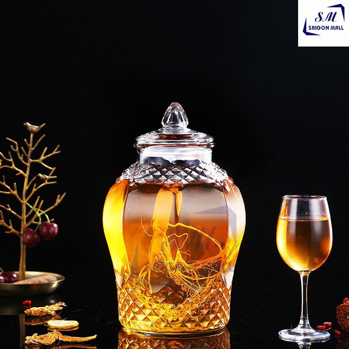 Bình ngâm rượu thủy tinh được làm từ thuỷ tinh nguyên chất, có độ dày, trong suốt và sáng bóng cao, thích hợp để ngâm rượu, ủ lên men các loại hoa quả, yến sào, thuốc bắc v.v... Thích gì đựng nấy.. hoặc dùng để trang trí nội thất cho tư gia, quán ăn, nhà hàng.
