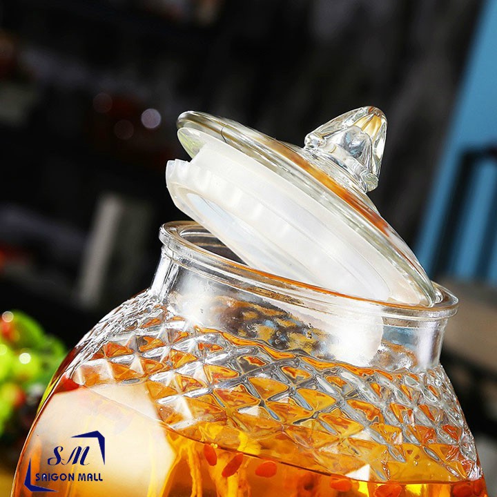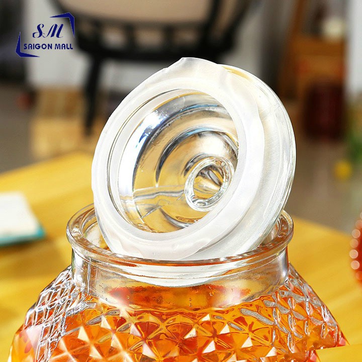 Bình ngâm rượu thủy tinh họa tiết kim cương 8833-6L có van và không van