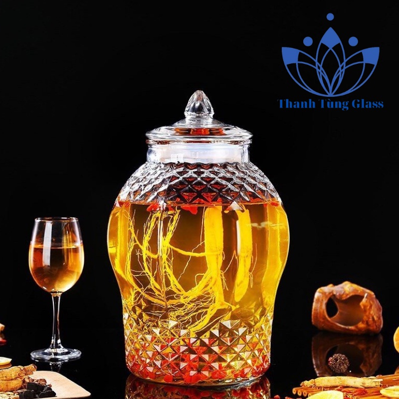Bình ngâm rượu thủy tinh được làm từ thuỷ tinh nguyên chất, có độ dày, trong suốt và sáng bóng cao, thích hợp để ngâm rượu, ủ lên men các loại hoa quả, yến sào, thuốc bắc v.v... Thích gì đựng nấy.. hoặc dùng để trang trí nội thất cho tư gia, quán ăn, nhà hàng.