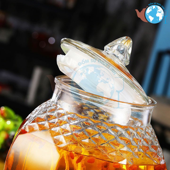 Bình ngâm rượu thủy tinh kim cương 8833 6 lít có van và không van