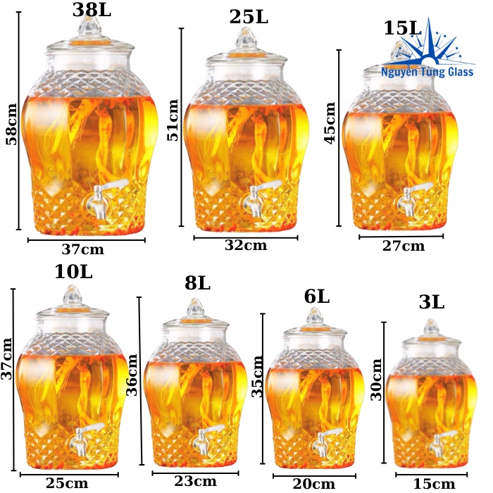 Thông số Bình Ngâm Rượu Thủy Tinh KIM CƯƠNG (3 LÍT ) CÓ VÒI & KHÔNG VÒI