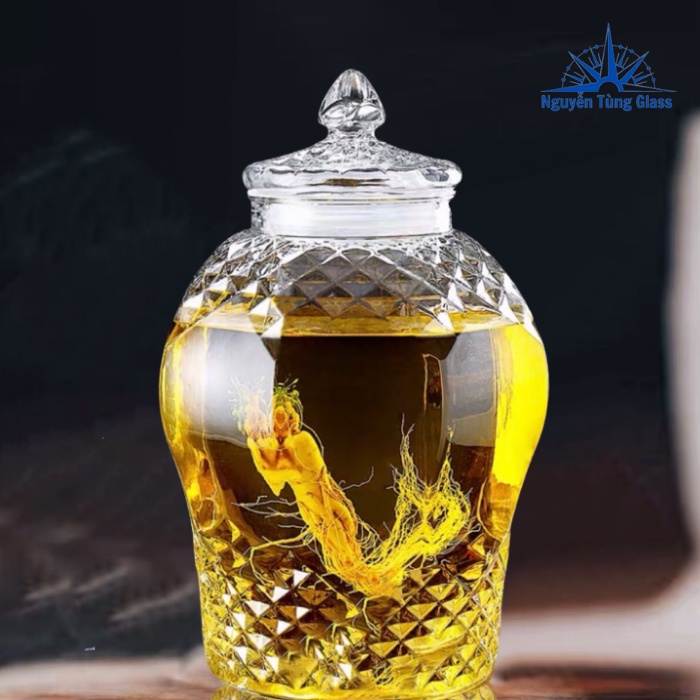 Bình Ngâm Rượu Thủy Tinh KIM CƯƠNG 3L kiểu dáng đẹp, lạ, độc đáo vừa để ngâm thành phẩm quý, vừa để trang trí nội thất gia chủ.