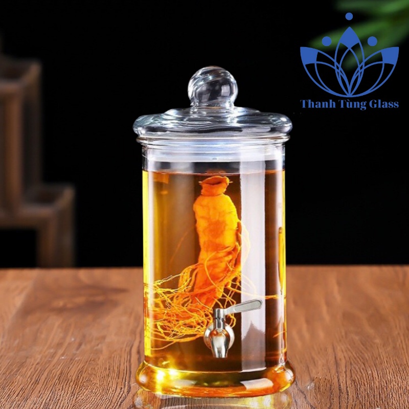 Bình ngâm rượu thủy tinh trơn không hoa văn 8 lít có van & không van